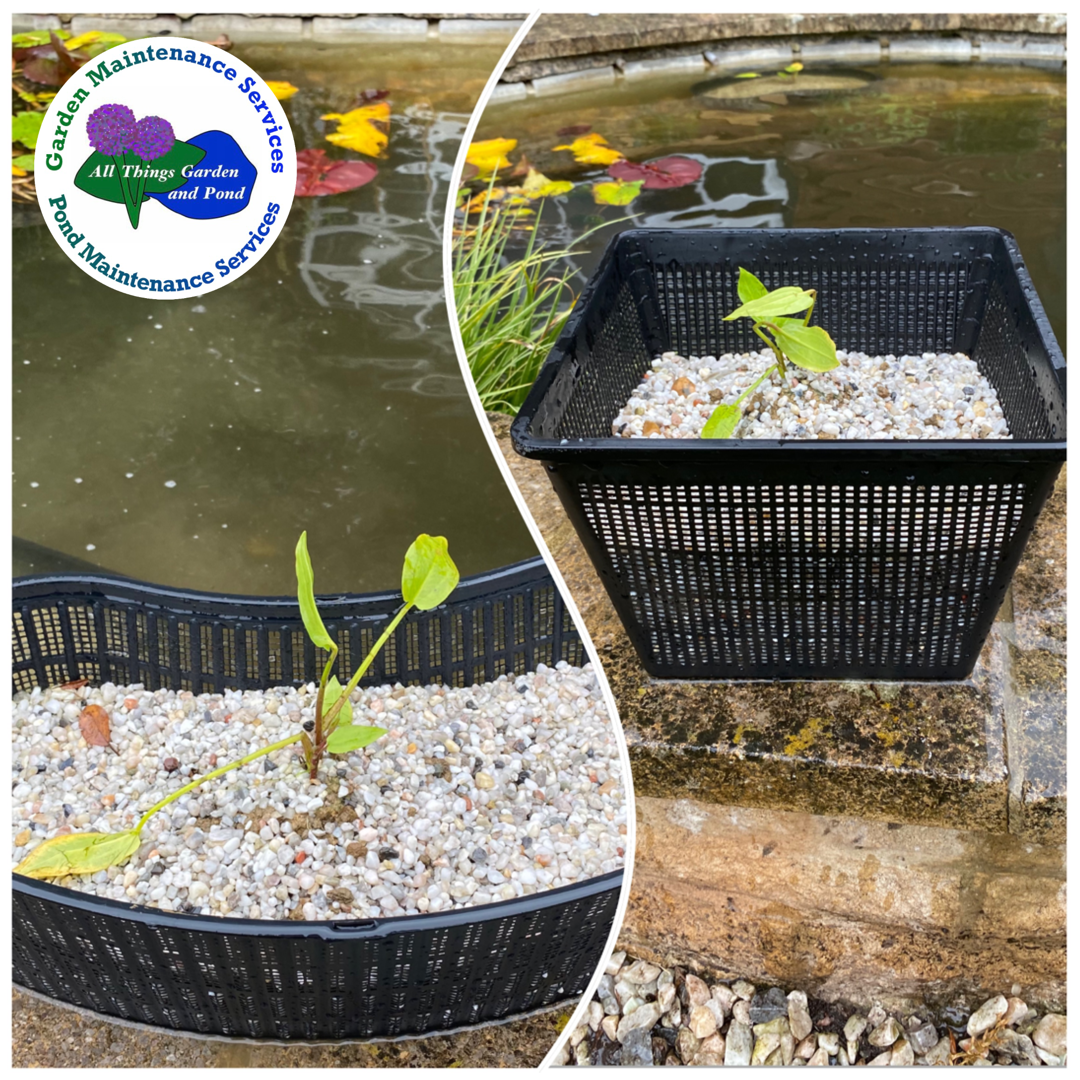 * At this point we will repot plants and divide others that have begun to take up too much space in the pond.
