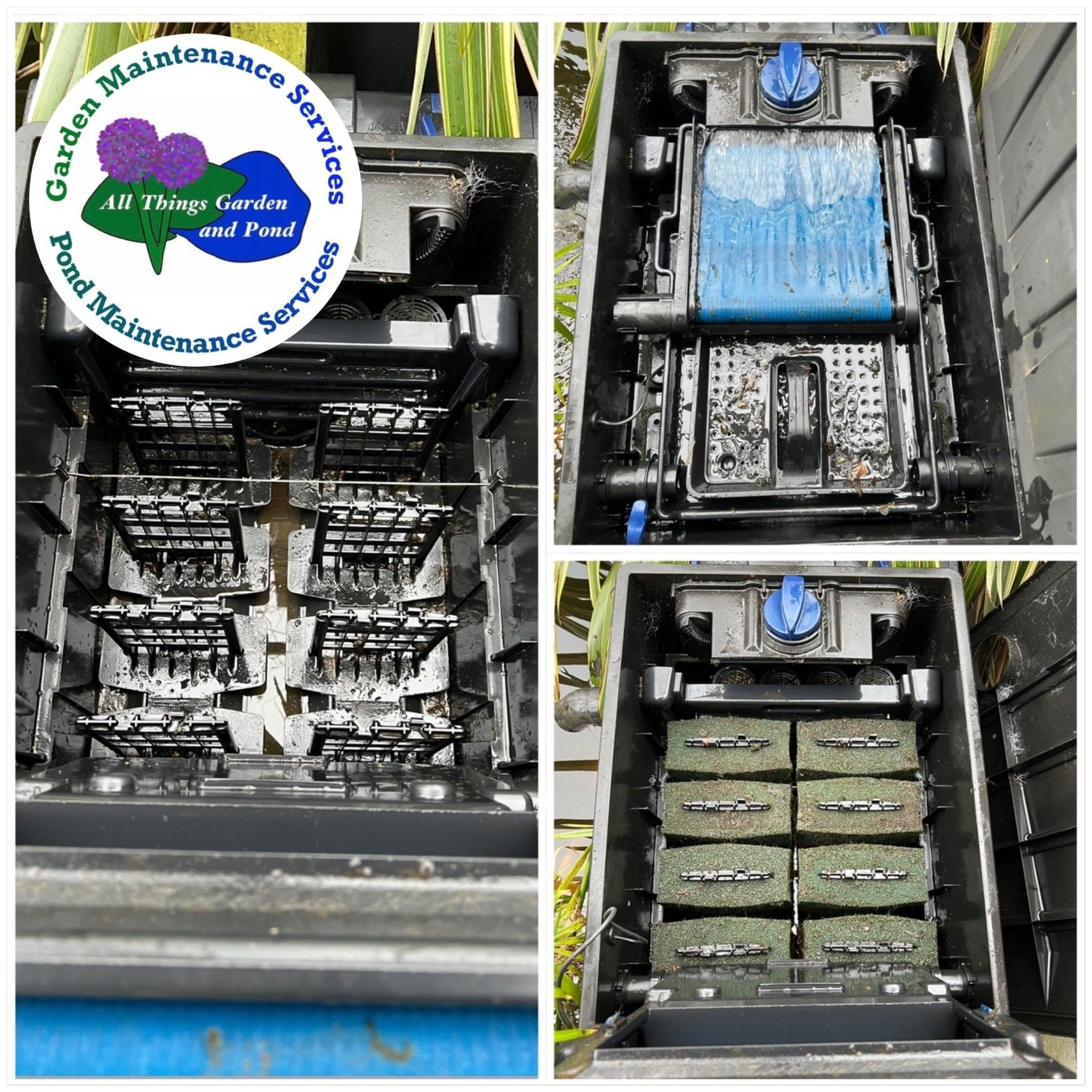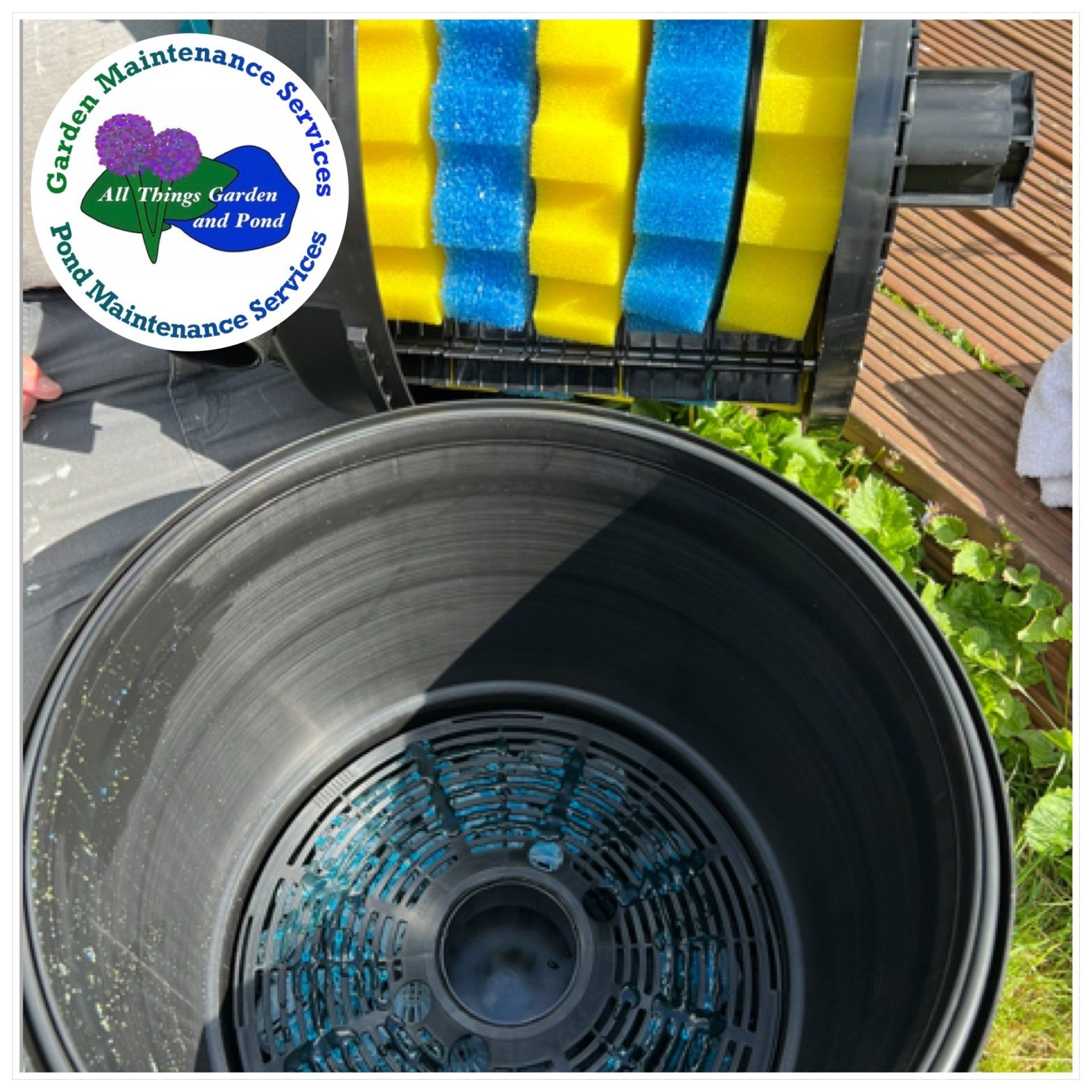*Please note we would not disturb the biological media with our filter clean service, as this is vital in keeping the pond healthy due to the nitrogen cycle that the biological filter helps towards, and if we felt the biological media wasn’t maturing correctly we have solutions we can add to you filter to help with this process going forward. We would also advise if we feel the filter system is inadequate for the size of pond you have, or if we feel the filter requires replacing due to age or beyond repair (Please see our pump and filter installation section for more information)