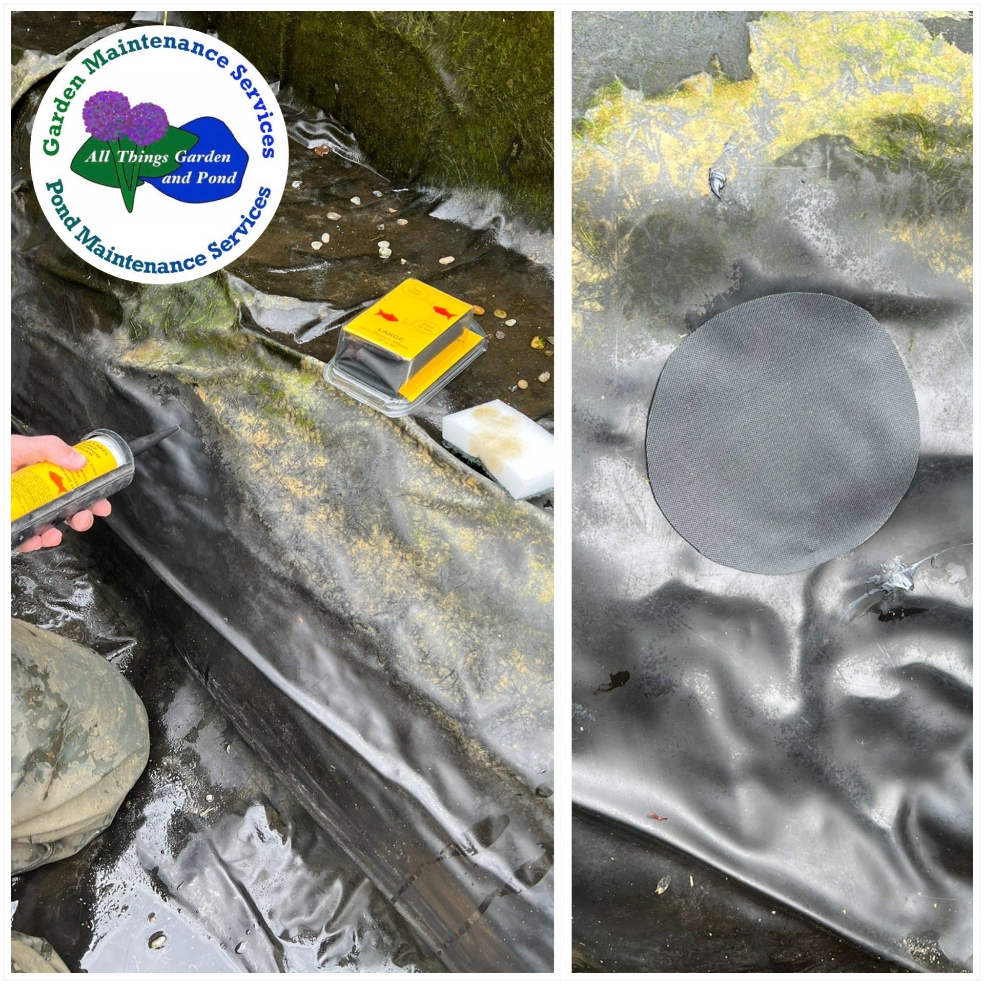 Please Note: We can only carry out a patch repair if the liner leak is due to small holes, and only in 1 or 2 areas, as if we find more that 2-3 areas, or if the hole is on the pond floor, we would always recommend a liner replacement as the patch repair will be under more pressure and may fail over a shorter period of time.