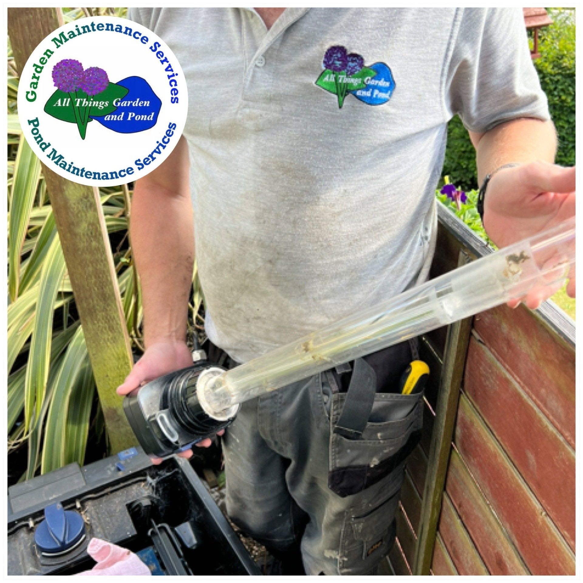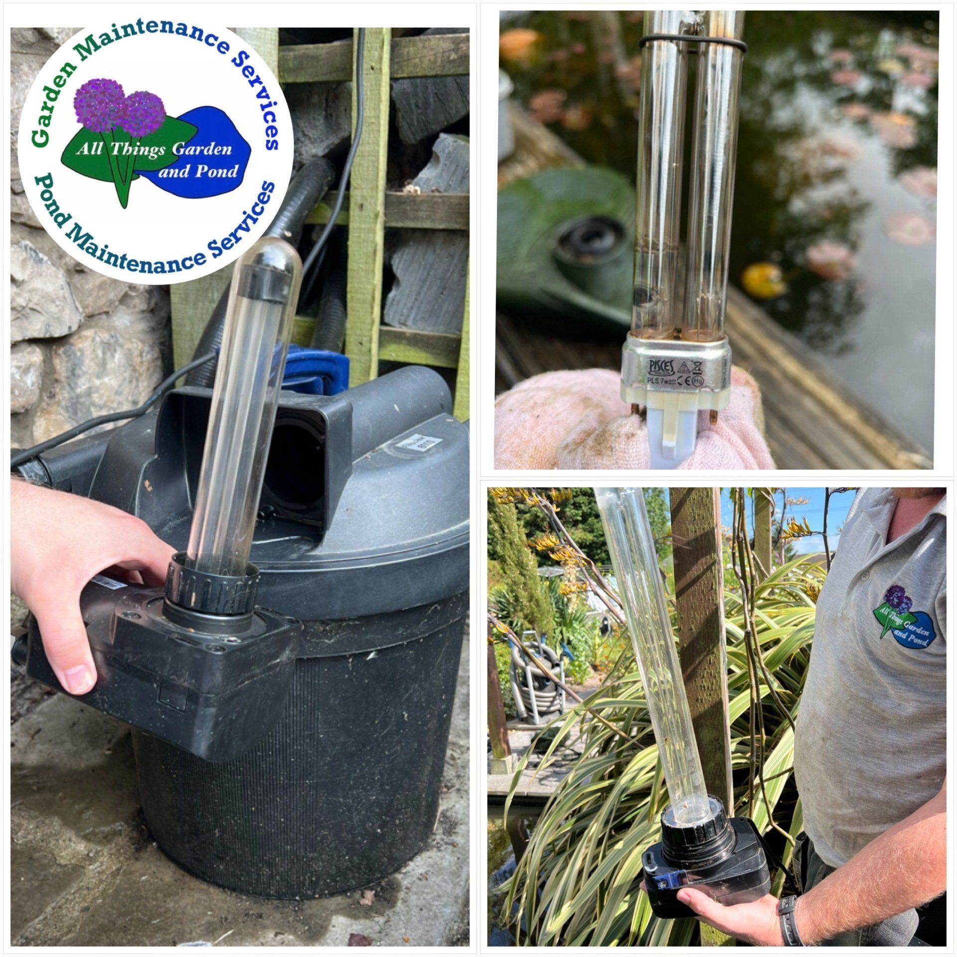 Have you had issues with green or murky water recently, or the flow rate from your filter has slowed and returning dirty water to the pond, then this could be a sign of your UV bulb (If installed) needing to be replaced, (as its always advisable to change the bulb every 12months) and it could be that your filter requires a clean out as a build up of organic waste in the filter can cause it to slow down and reduce the efficiency of its operation to clean the pond water, which in-turn causes dirty water returning to the pond, and leaving you with murky water that can cause stress to your aquatic life within the pond. We can help with this, with our filter maintenance service, we can change UV bulbs on any UV unit you have installed either stand alone or integrated into the filter system, and provide a filter clean to ensure it is able to cope with the dirty water from the pond, and returning it clear and healthy. We have worked on the majority of filters on todays market, and stock most spare parts for these filters to avoid any delays in the required service including changing filter sponges, hoses and clips.